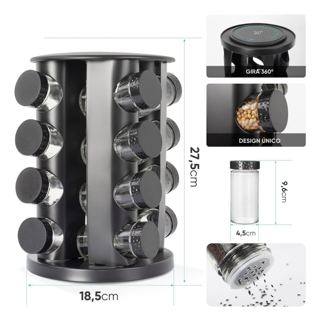 | Porta Temperos Condimentos 16 Potes Giratório Circular este produto | R$ 69,98 | 11% | 5.0/5 | — |