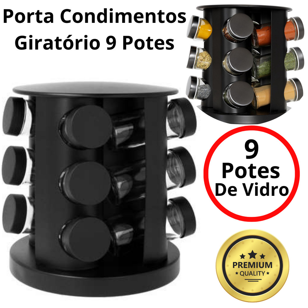| Porta Temperos Condimentos Giratório 9 Potes Vidro 90G com Tampa Do... este produto | R$ 26,90 | 59% | 4.8/5 | — |