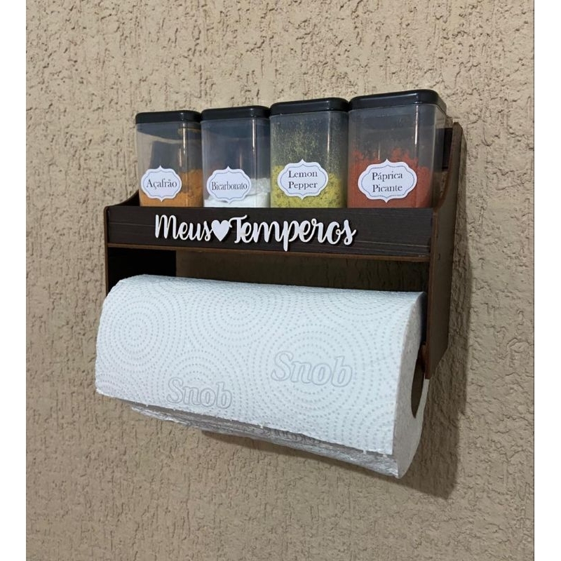Transforme sua cozinha em um ambiente mais organizado, prático e elegante com este porta temperos exclusivo! ✅ Material de qualidade: produzido em MDF pintado, resistente e durável. ✅ 4 potes plásticos porta condimentos já inclusos, prontos para armazenar seus temperos favoritos. ✅ Cartela de adesivos personalizada: para identificar cada tempero com praticidade. ✅ Suporte para papel toalha: funcional e prático, sempre ao alcance das mãos. ✅ Fixação na parede: economiza espaço na mesa e bancada deixando sua cozinha mais clean e organizada. ✅️Já vem montado pronto para uso. ✅ Envio rápido: seu pedido é despachado em até 24 horas úteis. Ideal para quem busca unir organização, praticidade e beleza em um único produto. Garanta já o seu e deixe sua cozinha ainda mais funcional e charmosa! ✨