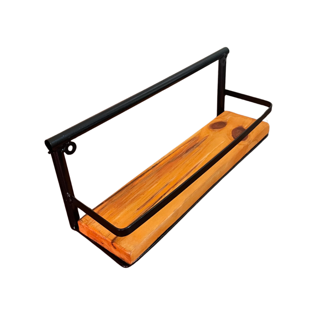 Prateleira artesanal em ferro e madeira , pintura eletrostática na cor preto brilhante , madeira tratada , com um fino acabamento. Linda prateleira estilo industrial minimalista produzida artesanalmente em ferro e madeira. O produto é enviado montado e sua instalação pode ser realizada através de dois parafusos anexados na parede. Pintura eletrostática (não enferruja). DIMENSÕES: Altura total: 15 cm Profundidade: 10 cm Largura: 40 cm Equipe de vendas MN Artesanatos , a sua disposição