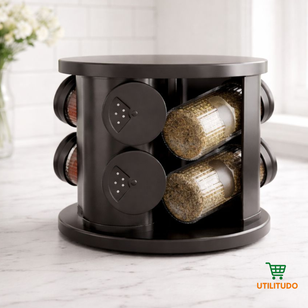 Porta Temperos Giratório Com 6 Potes de Vidro 85ml Design Moderno