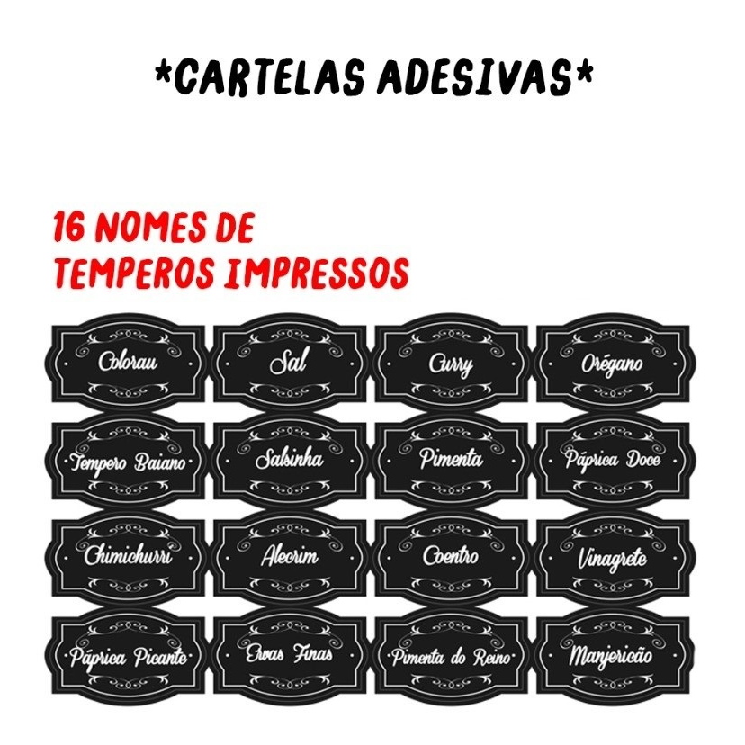 Porta Temperos kit com 10 potes organizador para condimentos + ETIQUETAS