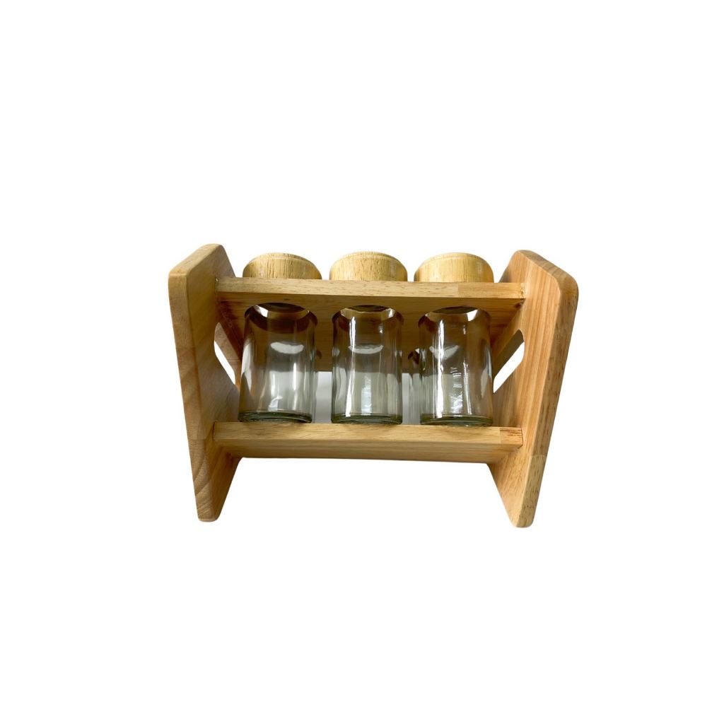 Porta Temperos Madeira 6 Potes de Vidro Com suporte