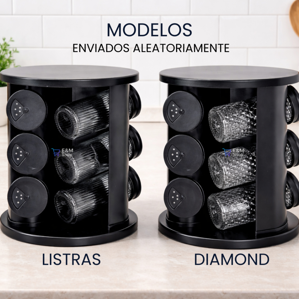 🔄 Porta Temperos Profissional Giratório – 9 Potes de Vidro Premium ✔ Base giratória 360° Acesse qualquer tempero com um simples giro. Muito mais agilidade no preparo das suas receitas. ✔ 9 potes em vidro resistente Nada de plástico frágil! O vidro conserva melhor os condimentos, não absorve cheiro e mantém a qualidade dos seus temperos por mais tempo. ✔ Tampa dosadora inteligente Controle a quantidade ideal na hora de usar — sem desperdício e sem exageros. ✔ Design moderno e sofisticado Deixa sua cozinha mais organizada e com aparência profissional. ✔ Fácil de limpar e reabastecer Praticidade do início ao fim. ⚠️ MUITO IMPORTANTE: CUIDADO COM VARIAÇÕES! 12 Potes Profissional 6 Potes Premium 🔎 Aqui você garante: 👉 9 potes 100% em vidro premium 👉 Acabamento profissional de verdade 👉 Qualidade superior em todos os itens Sem misturas, sem surpresas. 🔥 PROMOÇÃO LIMITADA! Estoque reduzido e alta procura. Garanta agora o seu porta temperos profissional e transforme sua rotina na cozinha com mais organização, praticidade e elegância. Não deixe para depois — organização também é cuidado com sua casa! 🏡✨