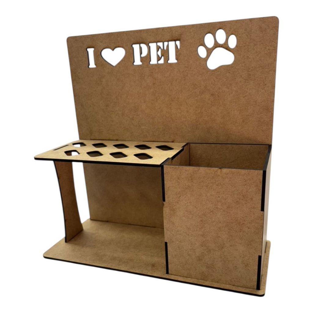 Porta Tesouras de Bancada para Petshops e Veterinarios - Produzido em MDF de Reflorestamento - Vão Para 9 Tesouras - Caixa Para Pentes, Maquinas, Escovas - Tamanho 22 x 22 x 9cm (A x L x P) - Escrita Vazada I LOVE PET - Produzido a Laser - Pintura Industrial Preto Fosco - Ja vai Montado - ESCOLHER NO MOMENTO DA COMPRA A COR DO PRODUTO ( PRETO ou CRU ) CRU VOCÊ PODE PINTAR OU PERSONALIZAR DA FORMA QUE DESEJAR