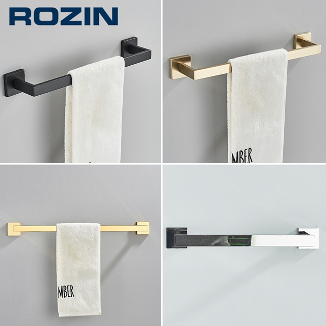Porta Toalha De Banheiro Inox Quadrado Suporte Toalheiro Solteiro 40/60cm Preto/Cromada/Ouro