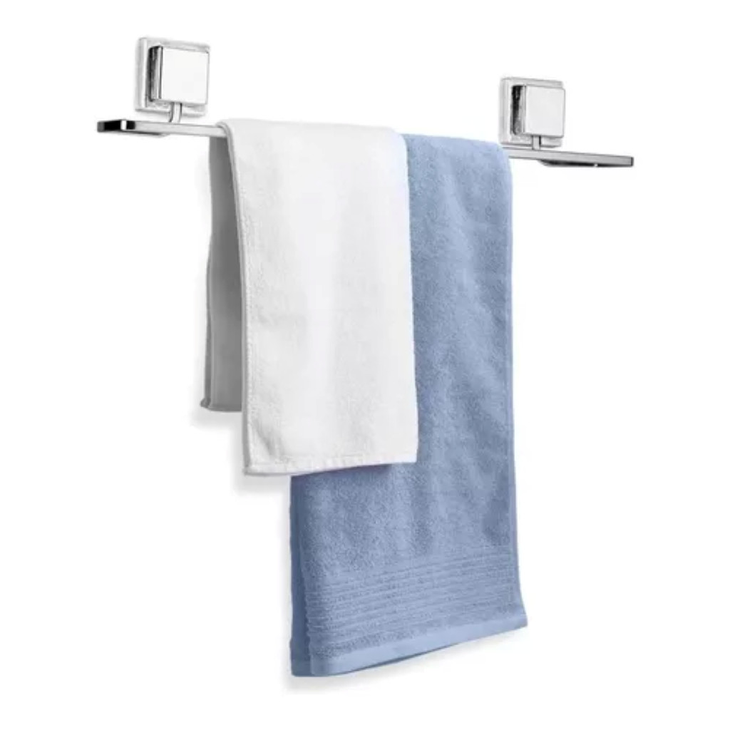 Porta Toalha De Banho Cromado 50cm Arthi Com Adesivo Super Resistente Fixação 3M Forte e Instalação