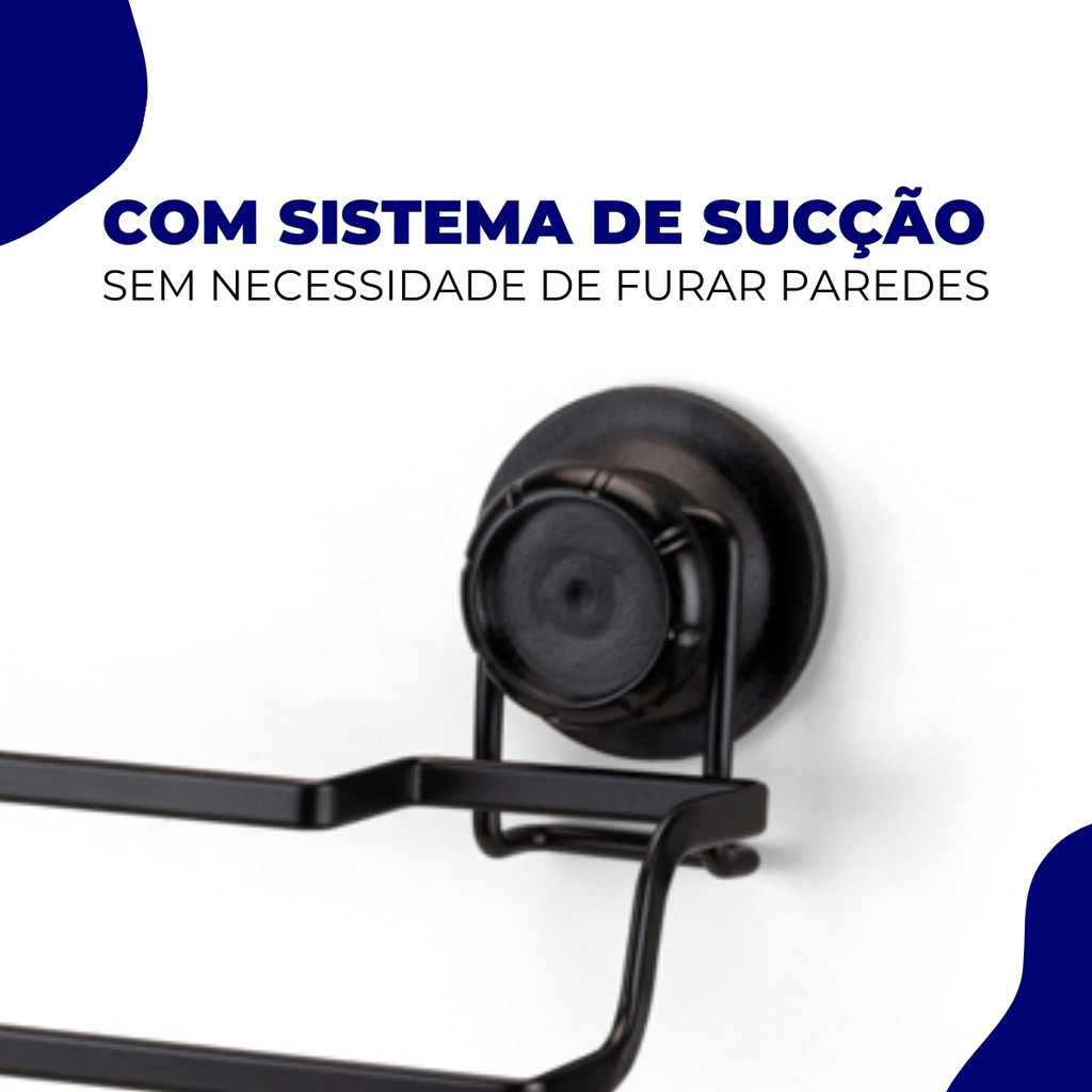 Porta Toalha de Banho Toalheiro Box Banheiro Parede Azulejo Fixação S/ Furo Ventosa Preto Arthi