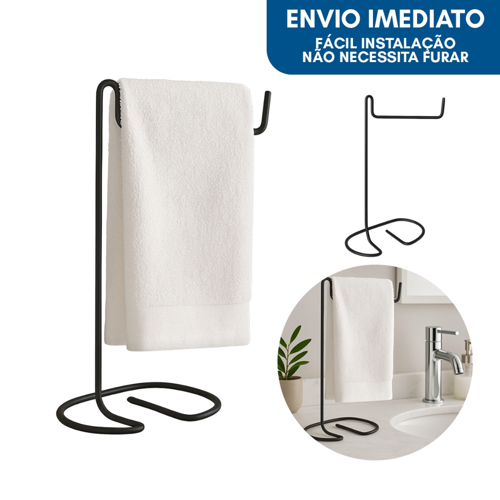 Porta Toalha de Rosto para Pia Lavabo Bancada Suporte Papel Higienico Pano de Prato Preto
