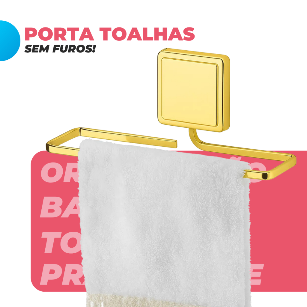Porta Toalha de Rosto Toalheiro Lavabo Banheiro Parede Fixação Adesiva Dupla Face Dourado Future
