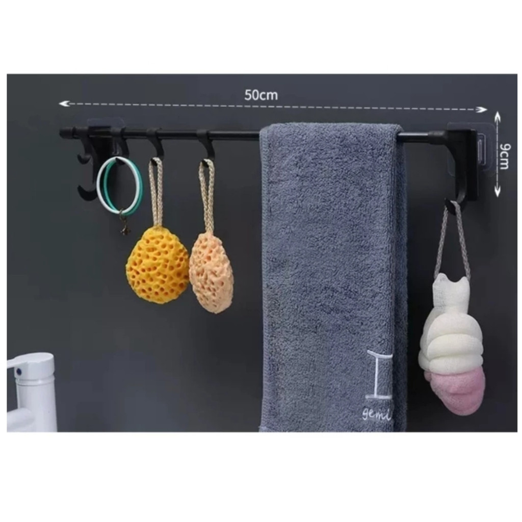 Porta Toalha Para Banheiro DUPLA CAMADA COM GANCHOS Sem Furo Com Suporte De Adesivos Multiuso