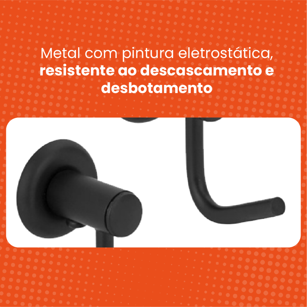 Olá, Seja Bem Vindo a Loja Kasa.com ------------------------------------------------------------------------------------------------------------------- ENVIO RÁPIDO E PRODUTOS A PRONTA ENTREGA!!! ------------------------------------------------------------------------------------------------------------------- Porta Toalha Preto Cabide Simples Para Banheiro - Material do Produto: Metal com pintura eletrostática, resistente ao descascamento e desbotamento **Produto é fixado na parede - Acompanha 02 Parafusos para evitar movimentação e má fixação. - Inclui canopla de acabamento de parede. **Resistente à corrosão e ferrugem, mantendo o acabamento impecável e modernizando o ambiente do banheiro. Ideal para pendurar roupas, toalhas e roupões de forma prática, organizada e segura. De fácil instalação, otimiza o espaço no banheiro. LIMPEZA DO ACABAMENTO: Recomenda-se limpar o acabamento periodicamente com pano macio, água e sabão neutro. Evitar o uso de palha de aço, saponáceos ou produtos químicos agressivos.