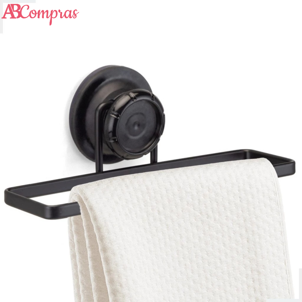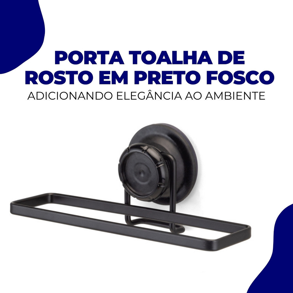 Porta Toalha Rosto Barra Banheiro Parede Azulejo Lavabo Fixação Sem Furo Ventosa Metal Preto Arthi