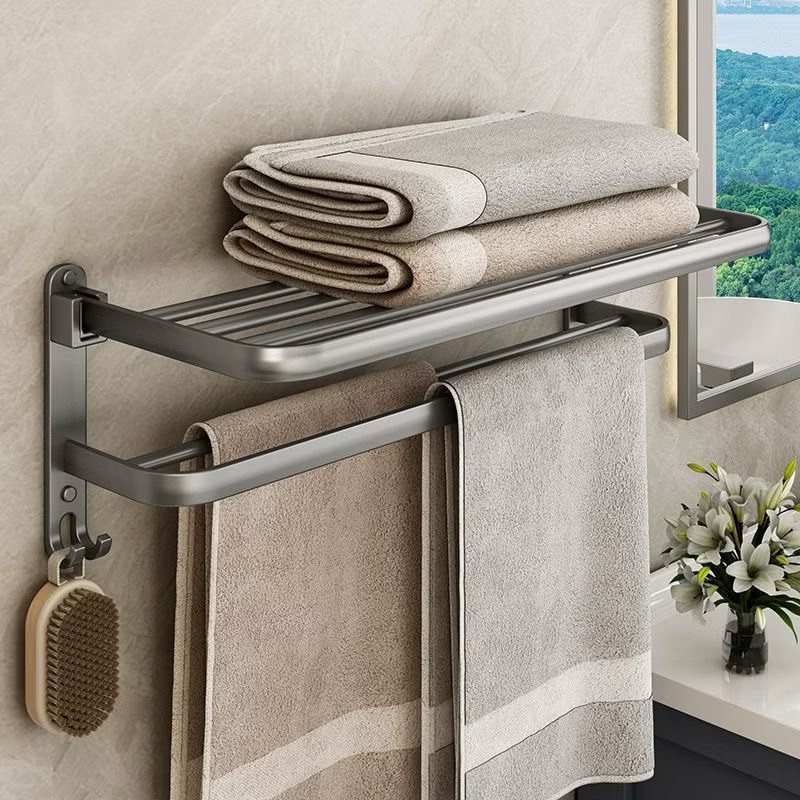 Este toalheiro de parede duplo de 60 cm é um acessório essencial para o banheiro de sua casa, facilitando sua vida e organizando seu espaço. Com uma prateleira dobrável para toalhas e ganchos móveis, oferece soluções eficientes de armazenamento à prova de ferrugem para o seu banheiro. Especificações: Comprimento: 60 cm Material: Alumínio espacial de alta qualidade Características: À prova de ferrugem, resistente à corrosão, não desbota e alta durabilidade Garantia: 3 meses Características: Combinação Multifuncional: A prateleira superior pode armazenar roupas limpas, enquanto a barra de toalha é ideal para pendurar toalhas de banho, toalhas de rosto, etc. Vários ganchos podem ser usados para pendurar pentes, bolas de banho e outros materiais de limpeza. Design Elegante e Leve: O design elegante e a poderosa função de armazenamento tornam-no adequado para banheiros, lavabos, cozinhas, varandas, quartos e outros espaços. Design Dobrável: Tanto a prateleira quanto a barra de toalha pod em ser dobradas contra a parede para economizar espaço, sendo ideal para apartamentos menores, banheiros, despensas, etc. Não é necessária montagem, basta fixá-lo na parede. Construção Durável: Feito de alumínio espacial de alta qualidade, oferece os benefícios de ser à prova de ferrugem, resistente à corrosão, não desbotar e alta durabilidade. Aplicações: Uso Versátil: Adequado para banheiros, lavabos, cozinhas, varandas, quartos e mais. Economia de Espaço: A característica dobrável é perfeita para maximizar o espaço em áreas menores.