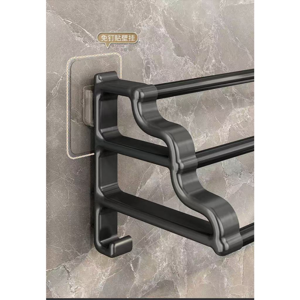 Ter um banheiro organizado traz leveza e praticidade para sua rotina. Para que o banheiro fique em ordem é necessário o uso de alguns produtos. O suporte para toalhas é indispensável pois ele comporta até três toalhas, podendo ser instalado na parede ou na porta do banheiro, quarto entre outros lugares, a instalação ocorre de maneira fácil e prática pois já acompanham parafusos na mesma cor da peça e buchas. Dimensão: 50 cm, triplo suporte, espaçoso para múltiplas toalhas. Material: Aço carbono + ABS, resistente e durável, adaptado a ambientes úmidos. Cor: Preto, design moderno, combina com qualquer decoração. Instalação: Sem furo, fixação adesiva segura, não danifica paredes ou portas. Perfeito para banheiro ou área domestic, organiza toalhas com praticidade e estilo.