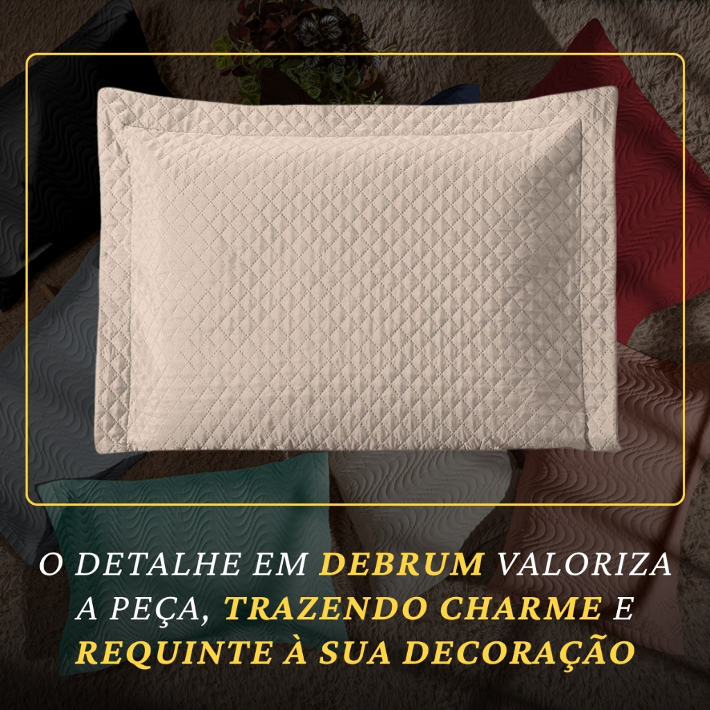 Conteúdo da Embalagem e Medidas Aproximadas: *CONFORME A ESCOLHA DA SUA COMPRA O PACOTE VAI CONTER:* 1 UNIDADE 2 UNIDADES 4 UNIDADES 70 x 50 cm (medida útil) Composição: Tecido: 100% Poliéster Manta: 100% Poliéster Forro: 100% Polipropileno "Adicione um toque de sofisticação e elegância à sua cama com o Porta Travesseiro exclusivo da MR Enxovais. Este lindo acessório é meticulosamente trabalhado em um padrão matelado, revelando delicados desenhos de losango que conferem um charme único ao ambiente. O design de cor sólida do porta travesseiro proporciona uma versatilidade encantadora, permitindo combinações perfeitas com uma variedade de opções de roupa de cama, sejam elas lisas ou estampadas. Seu acabamento com debrum adiciona um toque de requinte, destacando-se de forma sutil, mas impactante na decoração do espaço. Características: Matelado com desenhos em losango. Acabamento em debrum para destacar a decoração. Lavável em máquina no modo delicado. Observações Importantes: Por favor, esteja ciente de que as imagens do produto podem variar em termos de tonalidade de cor, dependendo das configurações individuais de cada monitor ou de lotes de tecido diferentes.