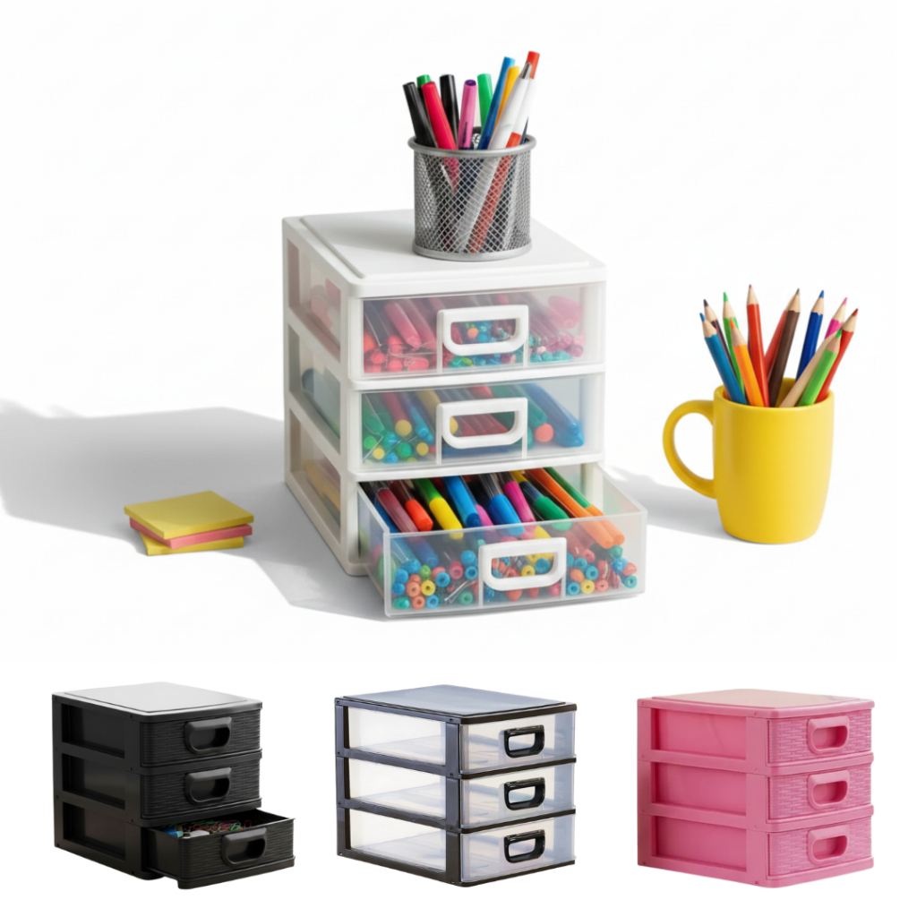 Mantenha seu espaço organizado com este prático Gaveteiro Compacto. Com 3 gavetas espaçosas, ele é perfeito para armazenar e organizar pequenos objetos, como materiais de escritório, acessórios de costura, bijuterias ou itens de artesanato. Fabricado com materiais de alta qualidade, este mini gaveteiro combina design funcional e compacto, sendo ideal para mesas, bancadas ou prateleiras. Sua estrutura robusta garante durabilidade, enquanto as gavetas deslizantes oferecem fácil acesso aos itens armazenados. Características: Opções de Dimensões: P (15 x 13 x 14) Quantidade de gavetas: 3 Uso versátil: Perfeito para escritório, costura, artesanato ou itens diversos Compacto e leve: Ideal para espaços pequenos Organize seu dia a dia com estilo e praticidade!