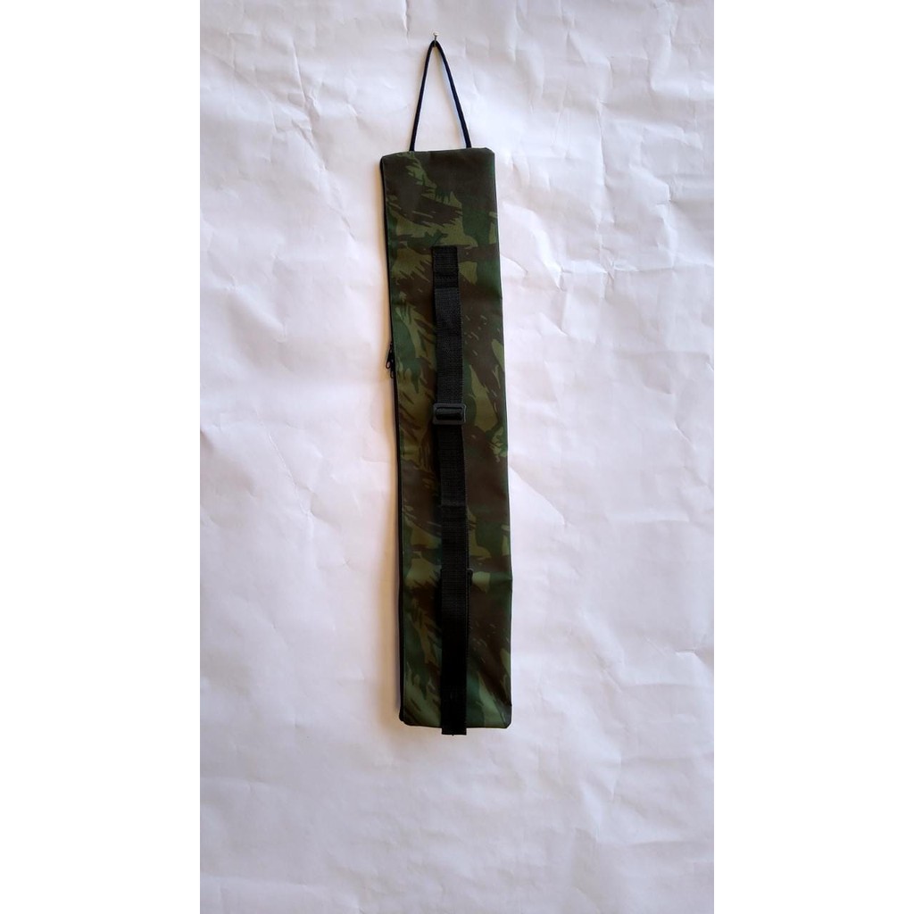 Porta vara de pesca simples e pratico , com abertura total com zíper . Conta com uma alça regulável reforçada , para transporte na mão , no ombro ou nas costas . Possui um cordão para pendurar , facilitando o seu armazenamento . Acomoda varias varas de pesca. Comprimento 1,30 mt por 14 cm de largura . Confeccionada em nylon 600 . Temos nas cores preto , azul marinho , verde militar e camuflado . Temos nos tamanhos 70 cm , 85 cm , 1 mt , 1,15 mt , 1.3 mt , 1.5 mt , 1.7 mt e 2 mt com outros valores .