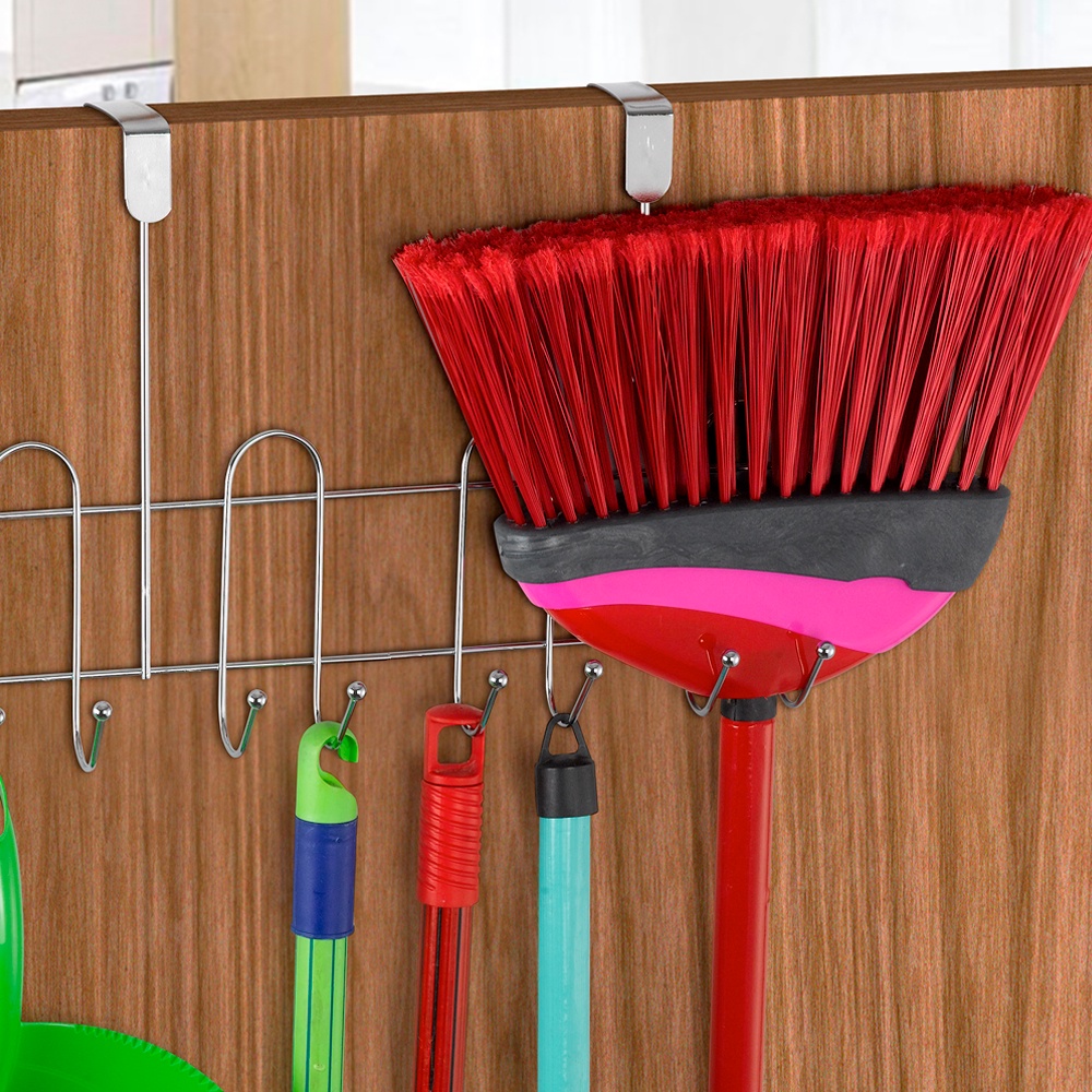 Próprio para pendurar na porta, não há necessidade de furar a parede para instalação. Excelente para pendurar vassouras, rodos e pás, porém é versátil podendo pendurar roupas e outros itens; Este cabide para porta é multiuso ideal para seu quarto, cozinha ou lavanderia. Utilize o cabide cromado para pendurar sua roupas, toalhas e cintos, vassouras e pazinha, com os ganchos no cabide você tem facilidade de organização. * Com capacidade para pendurar até 8 itens. * Esferas nas pontas para evitar arranhões. - Especificações do produto: * Altura: 25,5 cm * Comprimento: 40,7 cm * Largura: 10,5 cm Loja do Primo Variedades