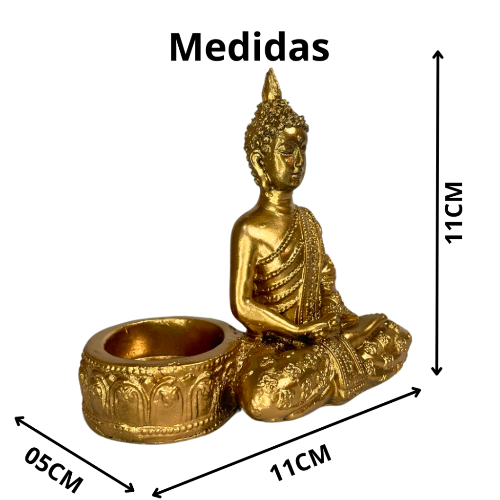 Porta Vela Buda Decorado Incensário Hindu Mini Buda Meditando Dourado