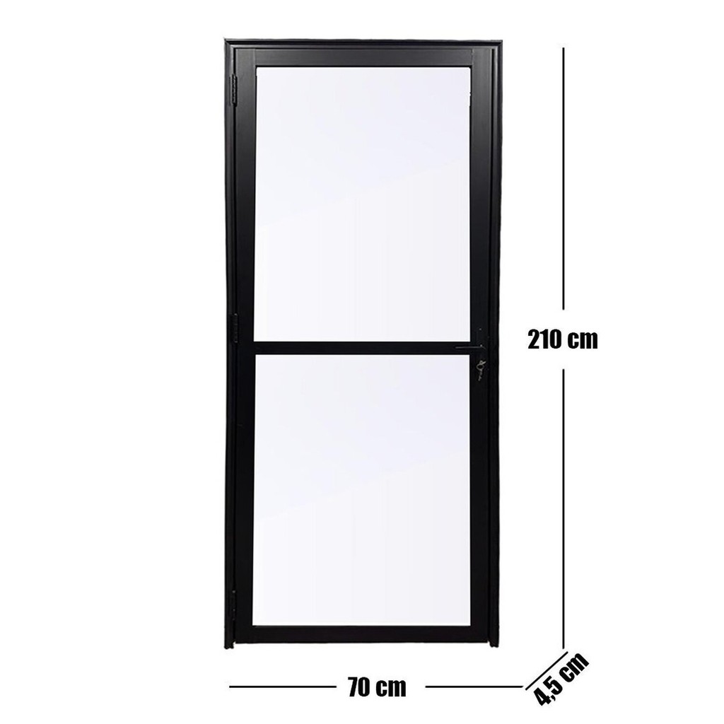 Porta Visione de Alumínio Preto da Linha Veneza fabricada e produzida pela Bergamo Portas e Janelas. Você encontra essa peça sob as medidas de 210cm de altura, 70cm de largura, 4,5 de espessura e 20kgs. Com lado de abertura na esquerda Com grande durabilidade e resistência, a porta pode ser instalada em ambientes internos, sendo bastante procurada para ser utilizada em área de serviço, sacadas, lavanderias cozinhas e entre outros ambientes. Feita com alumínio de alta qualidade e conta com pintura eletrostática preta. A porta possui uma folha de vidro, acompanha batente, maçaneta, par de chave e vai pronta para ser instalada. É importante notar que sua instalação deve respeitar o nivelamento, verifique o alinhamento das extremidades com uma ferramenta de nível para garantir a qualidade. Peso (kg): 20 Elétrica: Não Garantia: 12 Meses Altura (cm): 210 Largura (cm): 70 Cor do Vidro: Incolor Espessura (cm): 4.5 Possui Grade: Não Tipo de Vidro: Incolor Cor do Batente: Preto Modelo da Porta: Abrir Acompanha Trinco: Não Desenho do Vidro: Transparente Escala de Brilho: Semi-Brilho Lado de Abertura: Esquerda Textura da Porta: Com detalhe vidro Acompanha Batedor: Não Acompanha Batente: Sim Acompanha Puxador: Não Origem do Produto: Nacional Tipo de Dobradiça: Simples Espessura do Vidro: 3 Largura do Batente: 4.5 Acompanha Dobradiça: 3 Acompanha Fechadura: Sim Acompanha Guarnição: Não Material do Batente: Alumínio Material da Dobradiça: Alumínio Possui Isolamento Acústico: Não Acompanha Manual de Instalação: Sim Acabamento (Construção e Acabamento): Esmaltada Material Principal Construção e Acabamento: Alumínio Marca: Esquadrias Bergamo Cor do Produto: Preto Itens Inclusos: 01 porta Cor Predominante: Preto Linha ou Coleção: Linha Veneza