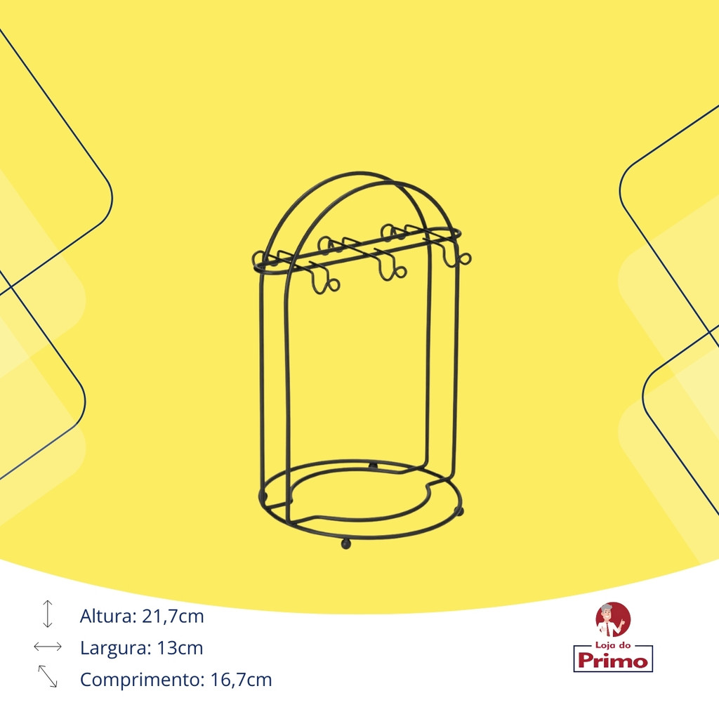 Porta Xícaras e Pires de Café Chá 6 Lugares Preto Black Arthi