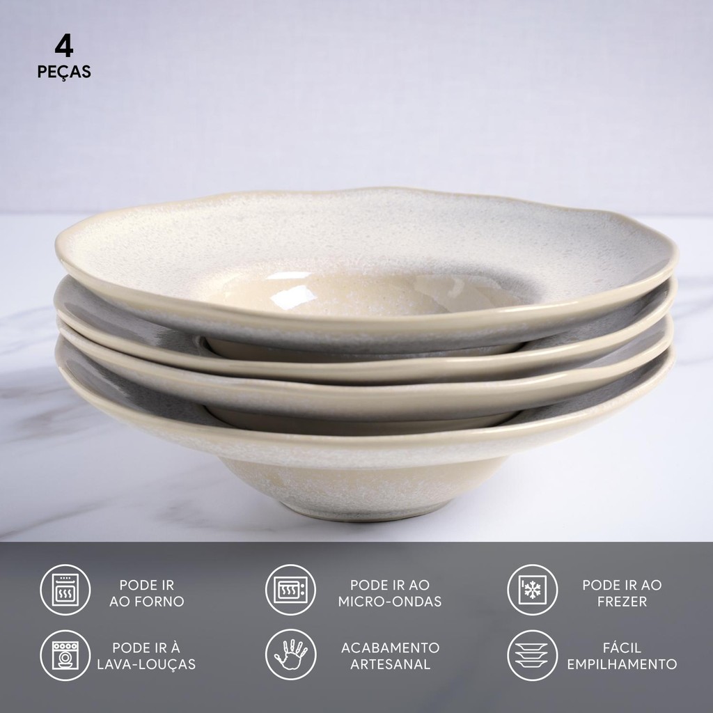 Porto Brasil Conjunto Com 4 Pratos De Massa Orgânico Latte Ø28X6,5Cm 450Ml