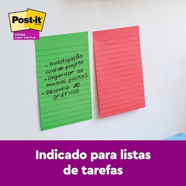 Bloco de Notas adesivas post-it pautado contém 270 folhas Medidas: 101mm x 152mm Especificações: 3 blocos adesivos, cada um com uma cor diferente Cada bloco tem 90 folhas cada um Ideais para anotar recados e anotações