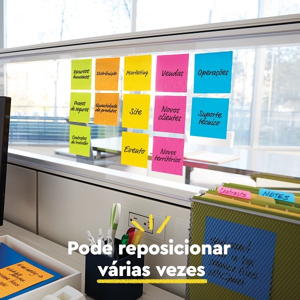 Nova coleção dos famosos blocos de notas adesivas Post-it em packs com mais variedades de cores. Suas ideias e sonhos só começam a tomar forma quando sua caneta encontra o papel. Porque quando você coloca suas ideias no papel, faz delas um pouco mais reais. Notas Post-it são as melhores parceiras neste ponto de conexão. É a transformação de seus pensamentos e os murais coloridos de Notas Post-it que iluminam as ideias de todos. Agora com ainda mais cores para escolher, suas ideias e Post-it são melhores juntos. Seu formato de 4,76 x 4,76 cm é ideal para anotar compromissos, tarefas, recados e tudo mais que você precisar. Cada pack possui 6 blocos com 45 folhas cada. Suas folhas são reposicionáveis, ou seja, possuem Super Adesivo Post-it, que permite que sejam retirados e recolocados, sem danificar papéis ou outras superfícies, sem deixar resíduos do adesivo e sem perder a eficiência na fixação. Sua embalagem é transparente e permite que você visualize a cor real do produto, além de protegê-lo, fazendo com que chegue sem nenhuma sujeira ou mancha em suas mãos. Tenha os blocos de notas adesivas Post-it sempre à mão em seu escritório ou em casa, dentro de seu caderno, da bolsa, próximo ao telefone, cabeceira da cama ou onde mais quiser.