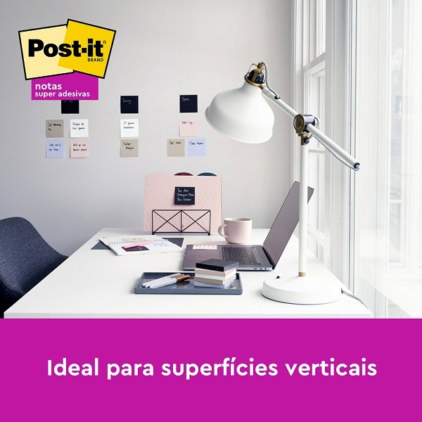 Nova coleção dos famosos blocos de notas adesivas Post-it em packs com mais variedades de cores! Suas ideias e sonhos só começam a tomar forma quando sua caneta encontra o papel. Porque quando você coloca suas ideias no papel, faz delas um pouco mais reais! Notas Post-it são as melhores parceiras neste ponto de conexão. É a transformação de seus pensamentos e os murais coloridos de Notas Post-it que iluminam as ideias de todos. Suas folhas são reposicionáveis, ou seja, possuem Super Adesivo Post-it, que permite que sejam retirados e recolocados, sem danificar papéis ou outras superfícies, sem deixar resíduos do adesivo e sem perder a eficiência na fixação. Detalhes: - Formato: 76MM x 76MM - Contém: 430 Notas - Cores: Rosa Claro, Azul, Cinza, Branco e Preto - Ideal para anotar compromissos, tarefas, recados e tudo mais que você precisar.