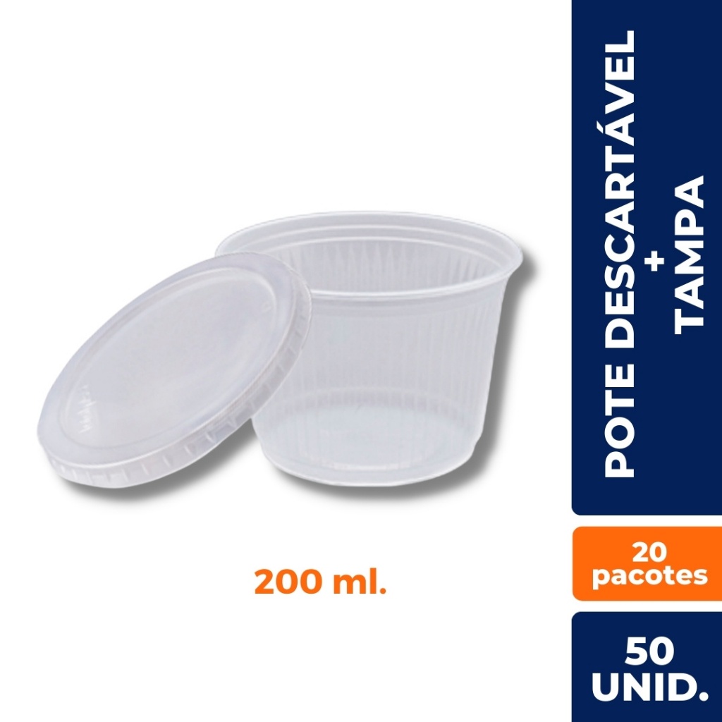 Pote 200ml Descartável com Tampa – Embalagem para Doces, Molhos e Sobremesas 1000 Un