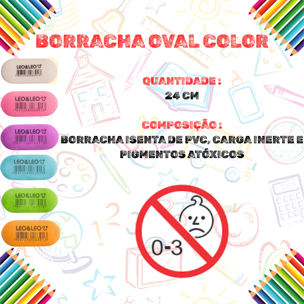 Pote 24 Borrachas Coloridas Oval Volta As Aulas - Escolar