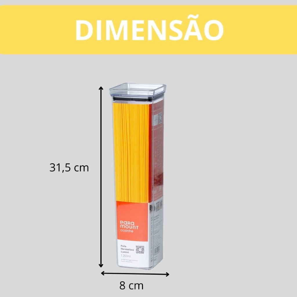 Pote Hermético 1.350 ml – Acrílico BPA Free Medidas: Altura: 31,5 cm Comprimento: 8,0 cm Largura: 8,0 cm Peso: 203 g Características: ✔ Material Premium: Acrílico transparente, livre de BPA ✔ Vedação Hermética: Conserva o sabor e a textura dos alimentos por mais tempo ✔ Design Transparente: Facilita a visualização do conteúdo ✔ Empilhável e Higienico: Organização prática e fácil de limpar ✔ Versátil: Ideal para armazenar mantimentos, macarrão espaguete, cereais, grãos, farinhas e muito mais Benefícios: Conserva alimentos secos por mais tempo Evita entrada de umidade e insetos Organiza armários, despensas e bancadas com estilo 💡 Transforme a organização da sua cozinha com praticidade e elegância!