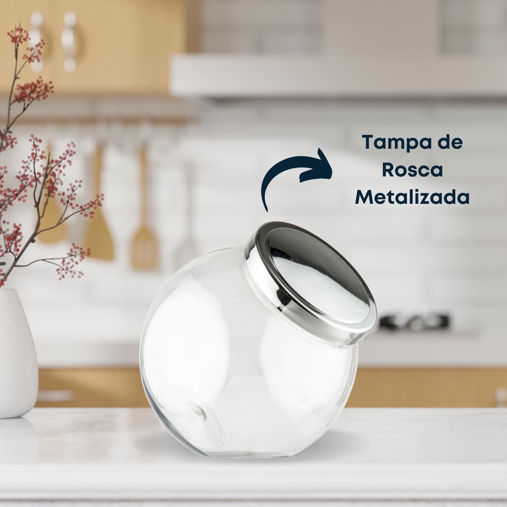 O Pote Baleiro Redondo Premium é versátil e ideal para colocar biscoitos, balas, doces, alimentos e o que mais você precisar! Possui 3 opções de apoio plano; feito em material transparente que permite a visualização do conteúdo. DADOS TÉCNICOS CORES: BRANCO, PRETO E ROSA Material: Plástico PET Capacidade: 2,5 Litros Dimensão: 17cm x 16 cm CORES: ROSE, DOURADO E CROMADO Material: Plástico PET Capacidade: 2,4 Litros Dimensão: 20X15 cm