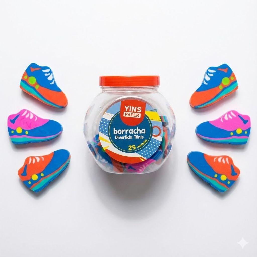 Pote com 25 Borrachas Tênis Esportivo Infantil Escolar Apaga Bem