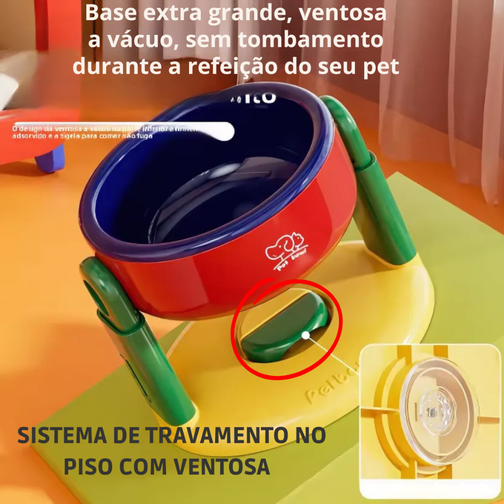 Pote Comedouro Cachorro Gato Tijela Com Ventosa e Regulagem de Altura