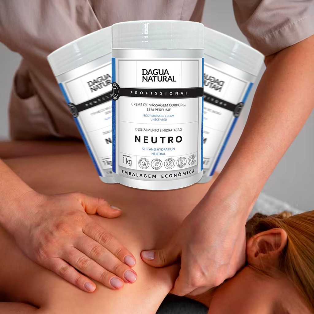 **POTE DE 1KG DO CREME NEUTRO DAGUA NATURAL** Desenvolvido para facilitar os movimentos da massagem, oferece um excelente deslizamento e maciez à pele. Produto neutro por não conter ativos e nem fragrância, este creme oferece também a possibilidade de se adicionar óleos essenciais, perfumes e outros componentes, conforme a preferência ou a necessidade de cada cliente. Com ação desodorante. Ativos: Sem ativos e sem perfume Modo de usar: Utilizar quantidade suficiente e aplicar nas regiões desejadas, com movimentos indicados para cada tipo de massagem. Precauções / cuidados: Em caso de irritação, suspender o uso imediatamente e procurar orientação médica. O produto não deve ser utilizado por pessoas hipersensíveis a qualquer componente da fórmula. Não aplicar se a pele estiver irritada ou lesionada. Manter ao abrigo da luz e calor excessivos. Manter fora do alcance de crianças. Uso externo. Composição: Aqua, Paraffinum Liquidum, Cetearyl / Sodium Lauryl Sulfate, Propylene Glycol, Imidazolidinyl Urea, Acrylates/C10-30 Alkyl Acrylate Crosspolymer, Methylparaben, Propylparaben, Sodium Hydroxide, Triclosan, BHT, Disodium EDTA. Validade: 36 meses Anvisa: 25351140829/2011-56