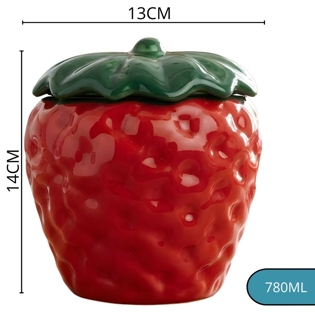 Pote De Cerâmica Esmaltada Morango Pequeno Com Tampa Antiaderente