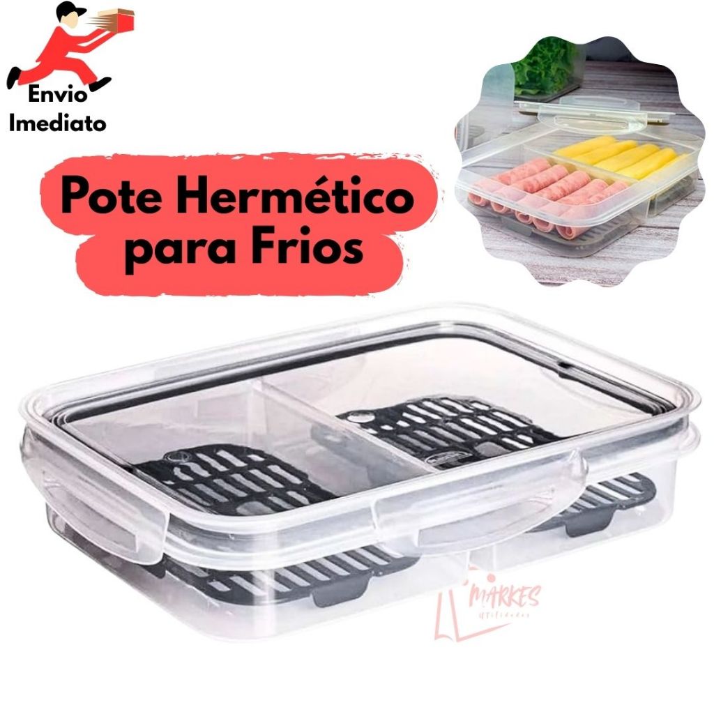 Pote de Frios Hermético com 2 Divisórias Com Escorredor Tampa Com Trava