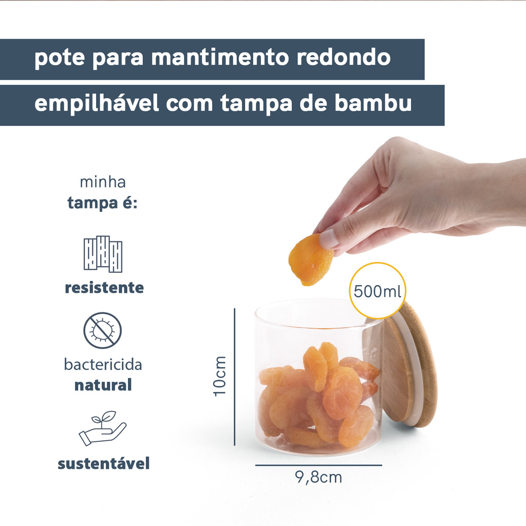 | Pote de Mantimentos Empilhável com Tampa de Bambu 500ml - Oikos este produto | R$ 31,90 | 18% | 5.0/5 | — |