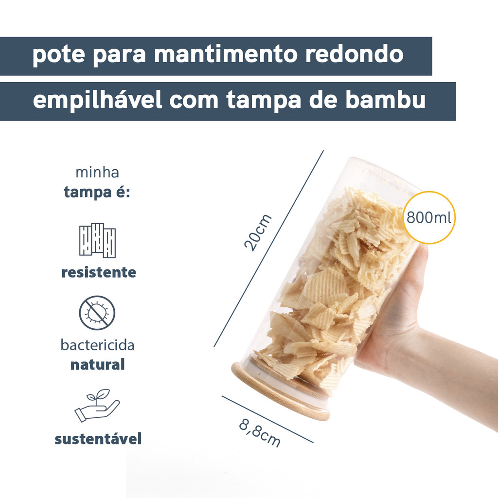 Pote de Mantimentos Empilhável com Tampa de Bambu 800ml - Oikos 800ml