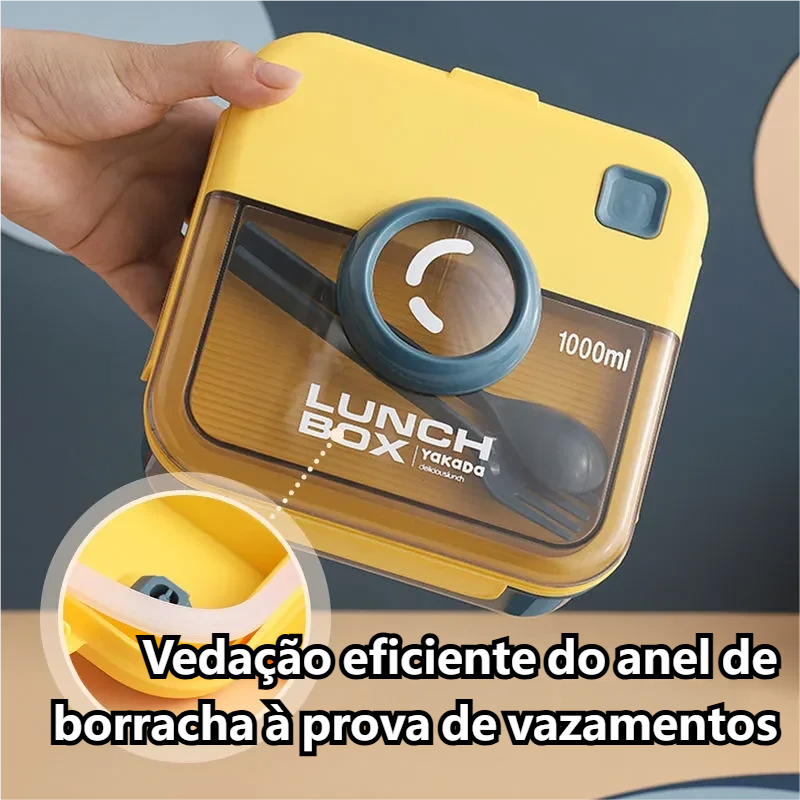 Design e Funcionalidades do Produto ✨O design criativo em formato de câmera torna esta marmita altamente reconhecível e com aparência excelente. ✨A arruela elástica e a tampa com encaixe (snap) trabalham perfeitamente juntas, formando uma estrutura de vedação dupla anti-vazamento, evitando eficazmente a fuga de líquidos. ✨A tampa da marmita possui um anel de vedação de silicone embutido, que reforça ainda mais o efeito anti-vazamento e garante uma operação fácil de usar. ✨Possui ampla gama de cenários de aplicação: adequada para escola, ambiente de trabalho, escritório e vários tipos de cenários de refeições portáteis ao ar livre. ✨Pode armazenar vários tipos de alimentos, como massas, frango, saladas, sanduíches, frutas, petiscos ou sushi, permitindo que você desfrute de refeições deliciosas a qualquer hora e em qualquer lugar. Vantagens do Material 🔹Feita de materiais de alta qualidade para contato com alimentos, é inodora, resistente a manchas e não se molda facilmente, garantindo segurança no uso. 🔹O material de fibra de trigo de alta densidade é robusto e durável, além de possuir propriedades anti-impacto — não há necessidade de se preocupar com danos causados por colisões acidentais. Especificações Técnicas ✅Cor:VERDE,AMARELO ✅Capacidade do modelo quadrado: 1000 ml, 17*17*7.5cm ✅Capacidade do modelo retangular: 1100 ml, 21.5*12.5*8cm Incluso: 💖1 x Pote De Marmita Lunch Box 2 Camadas 1100 ml 💖1 x Garfo 💖1 x Colher