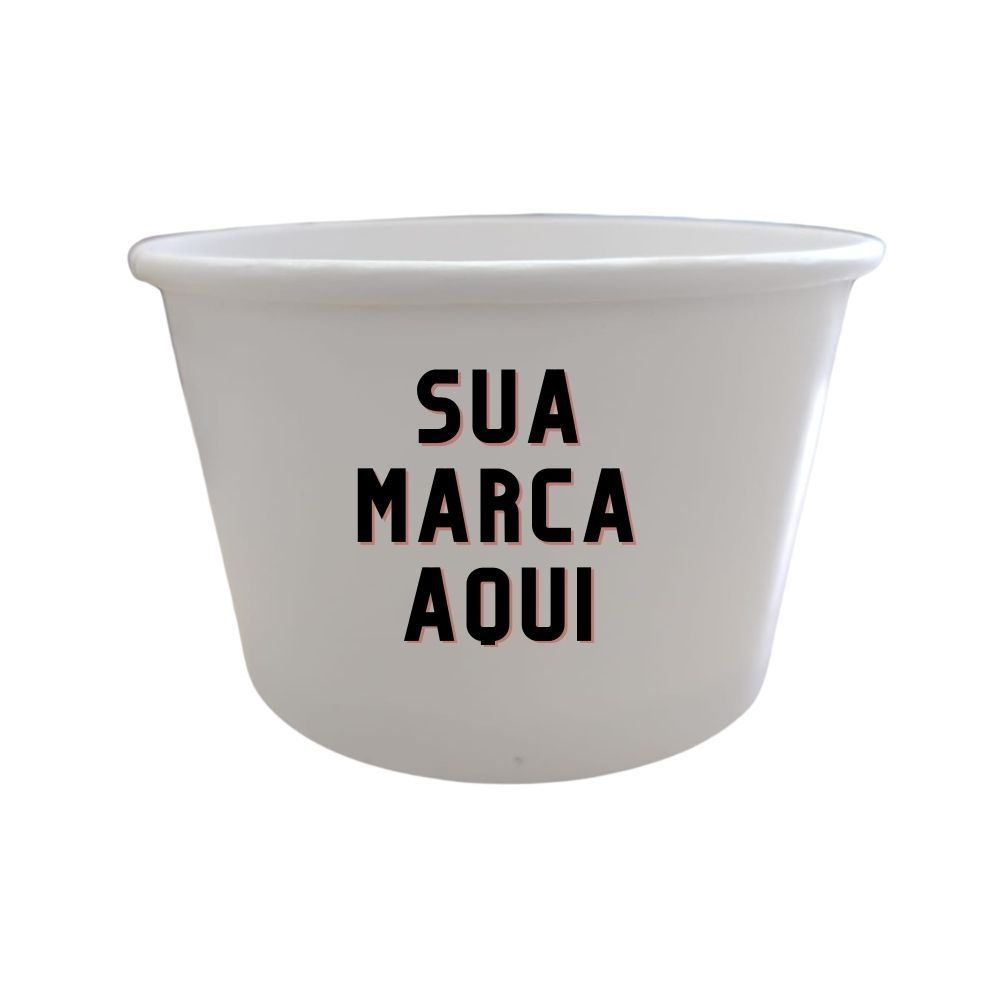 ATENÇÃO! ESSE KIT NÃO POSSUI TAMPA! Pote biodegradável PERSONALIZADO fabricado em papel e revestido com resina natural - Pacote com 50 unidades. PERSONALIZE SEU PRODUTO! Entre em contato conosco via chat e nos envie seu logo para personalização. CASO O LOGO NÃO SEJA ENVIADO, O PEDIDO SERÁ ENVIADO COM POTES EM BRANCO Ficha técnica: Capacidade nominal: 200 ml. Material: Papel cartão asséptico, próprio para contato com alimento Tinta: Atóxica, própria para contato com alimento Fechamento: Selagem Finalidade: Embalagem própria para contato com alimentos Peso unitário: 4,5 g. Medidas: 56 altura x 92 diâmetro sup. x 74 diâmetro inf. Temperatura: 90ºC até 10 min // Microondas até 2 min (pot. padrão) Congelamento: -18ºC Armazenagem: Embalagem original em ambiente seco e ventilado Validade: Prazo de validade indeterminado Ideal para substituir seus descartáveis convencionais por produtos biodegradáveis. Produto de acordo com a Lei municipal nº 17.261, de 13 de janeiro de 2020 da cidade de São Paulo.