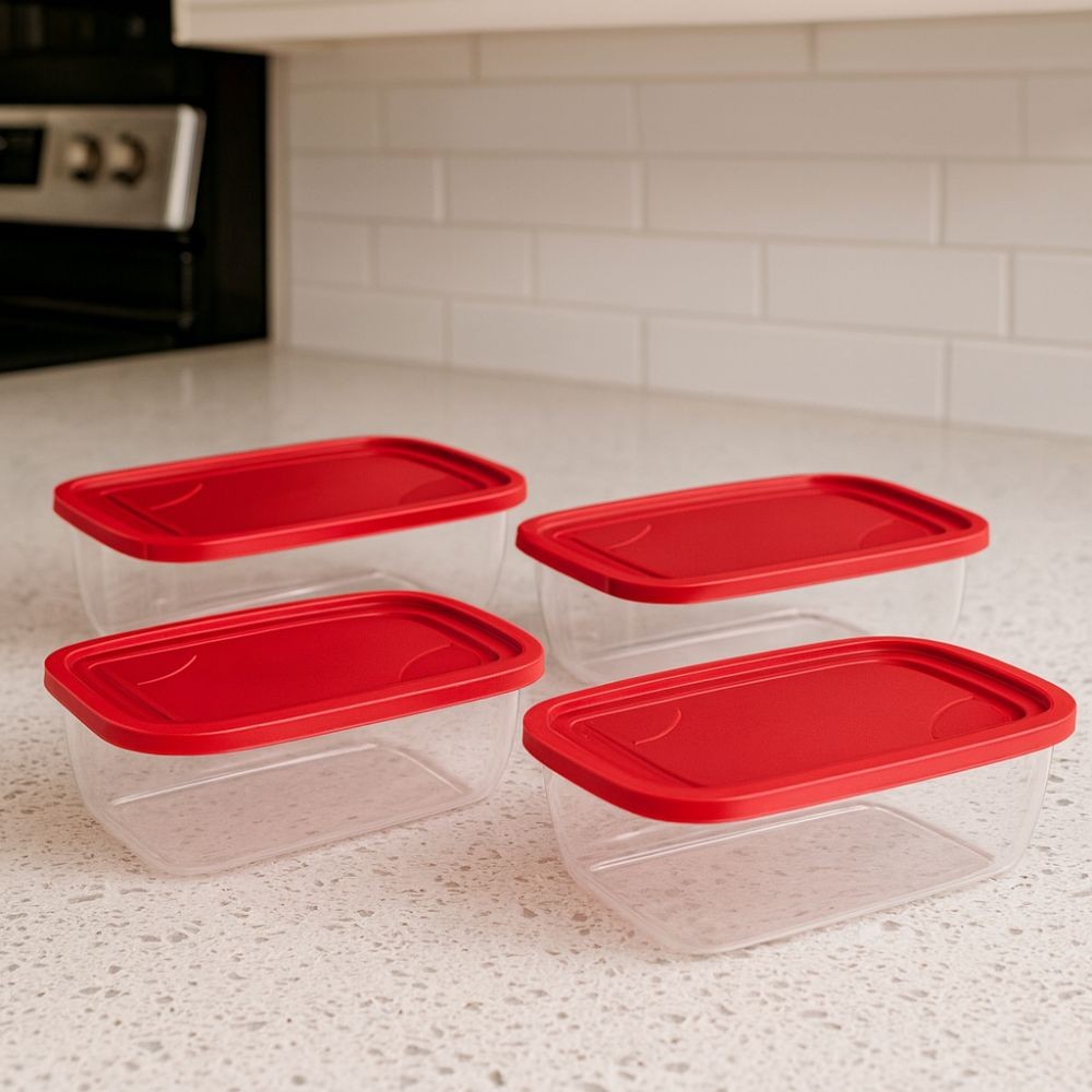 Pote de Plástico Retangular 350ml com Tampa Vermelha micro-ondas, máquina de lavar louças e freezer