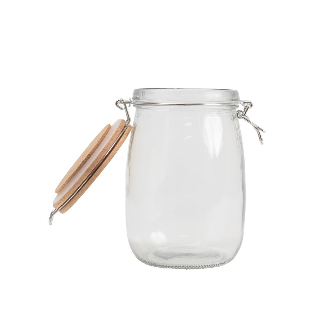 pote de vidro 1L com tampa de bambu e trava - Mozcada