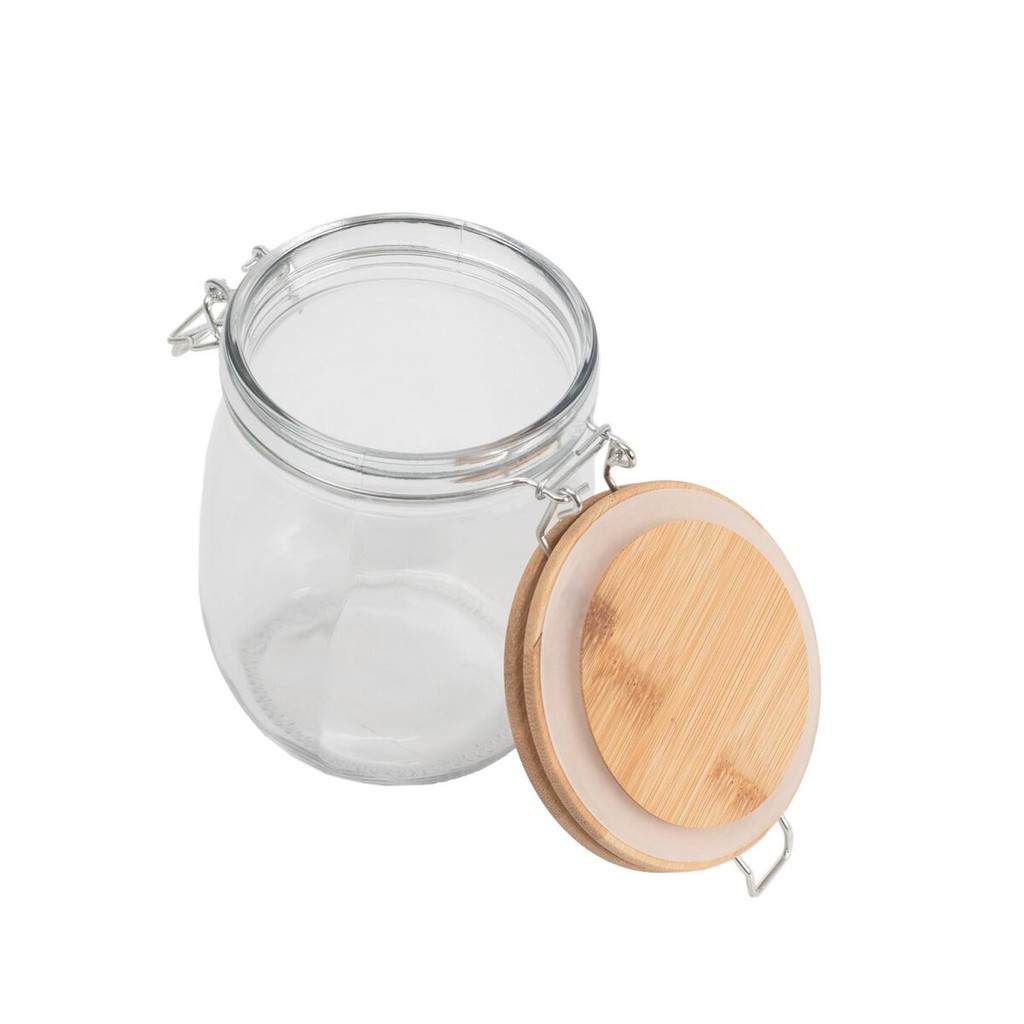 pote de vidro 700ml com tampa de bambu e trava - Mozcada