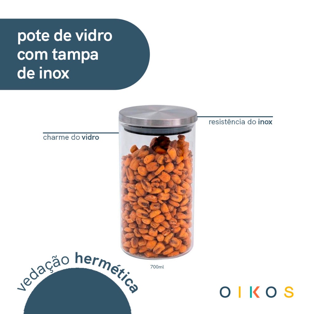 Pote de vidro 700ml com tampa de inox circular mantimento – Oikos