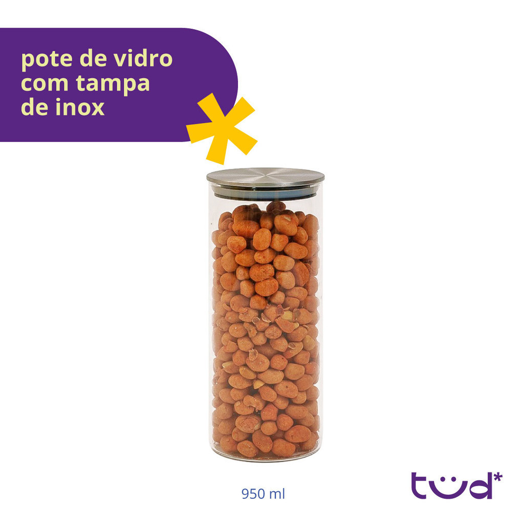 Pote de vidro 950ml com tampa inox hermético redondo - Tud