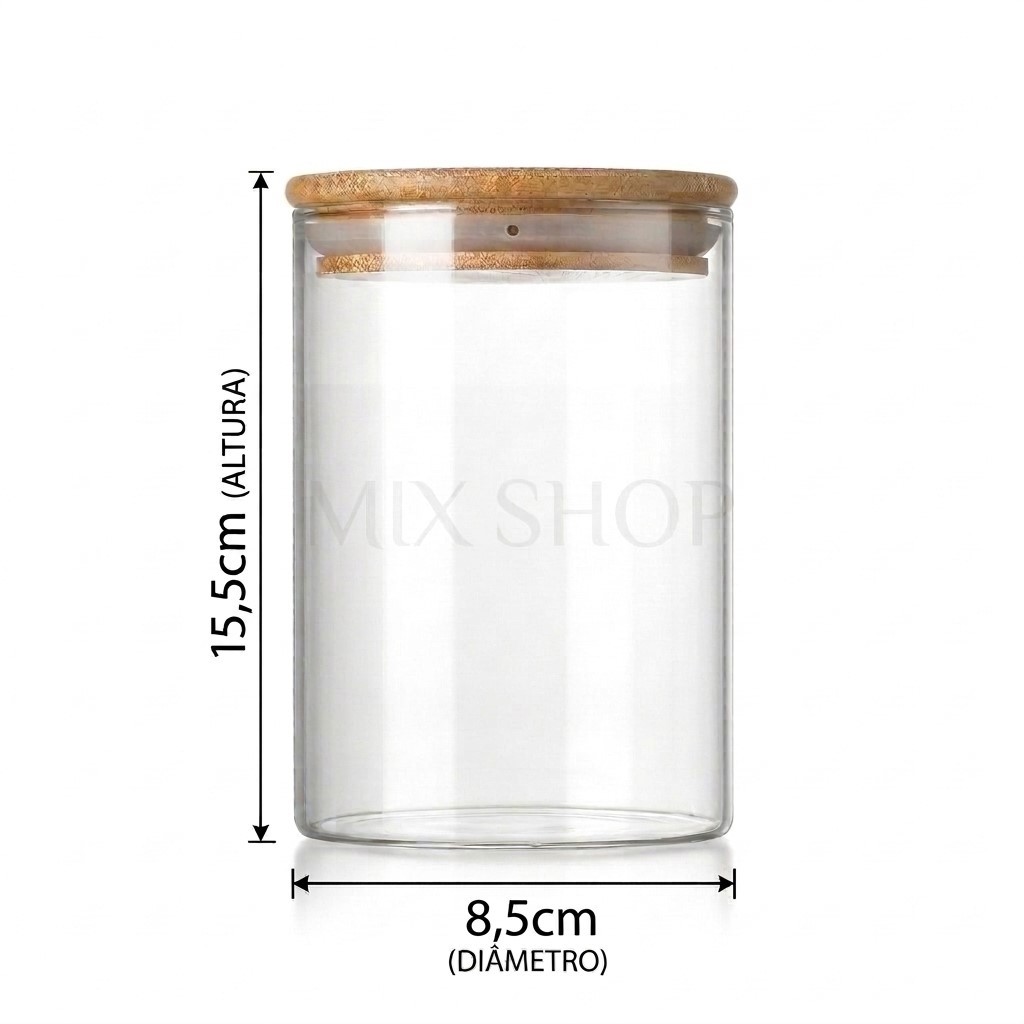 Pote de Vidro com Tampa de Bambu 600ml Hermético Porta Café em Grãos Condimentos Organização Cozinha Premium Minimalista
