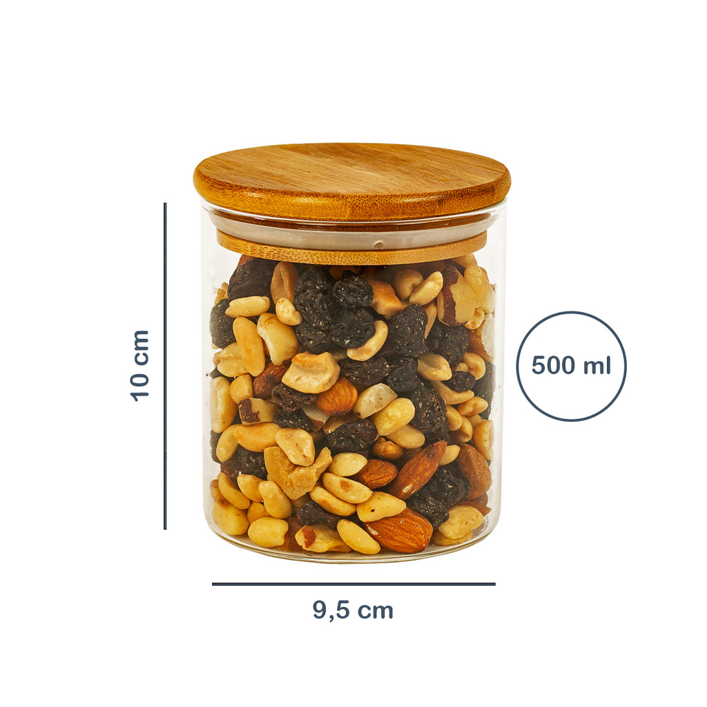 Pote de Vidro de Mantimentos 500ml C/ Tampa de Bambu Oikos